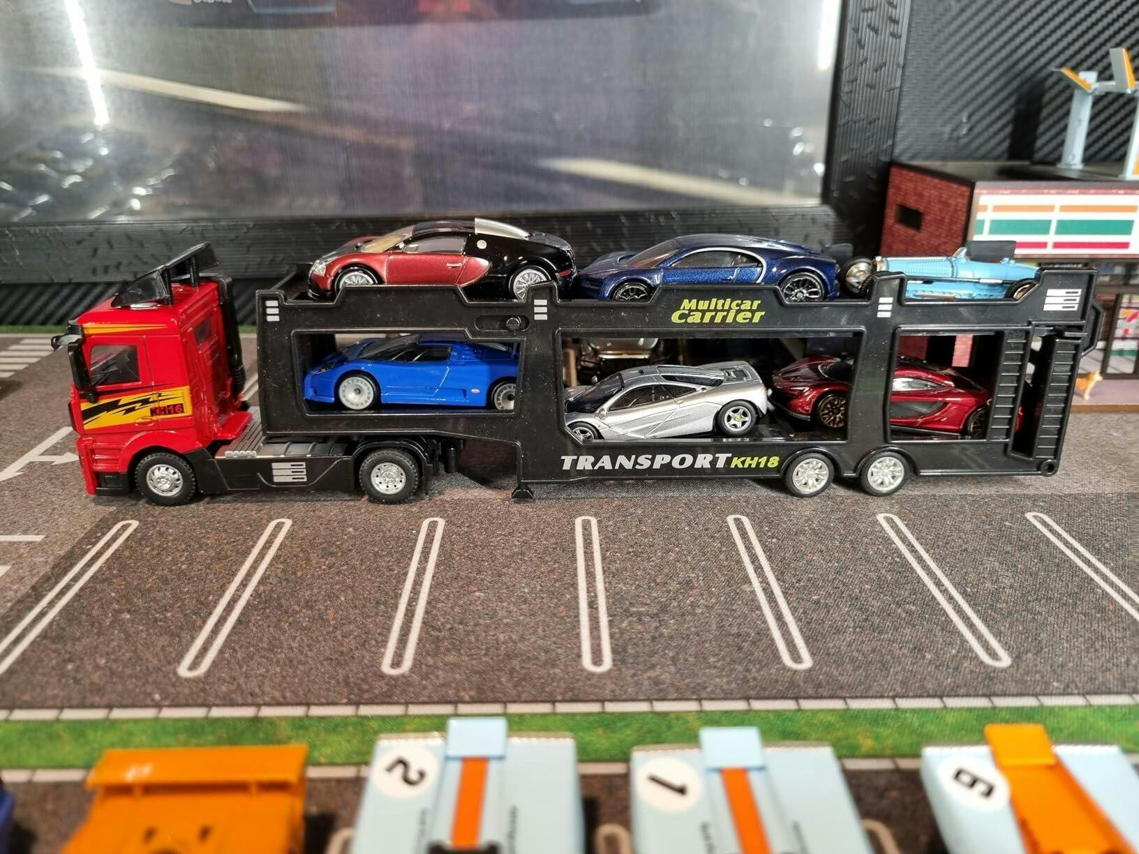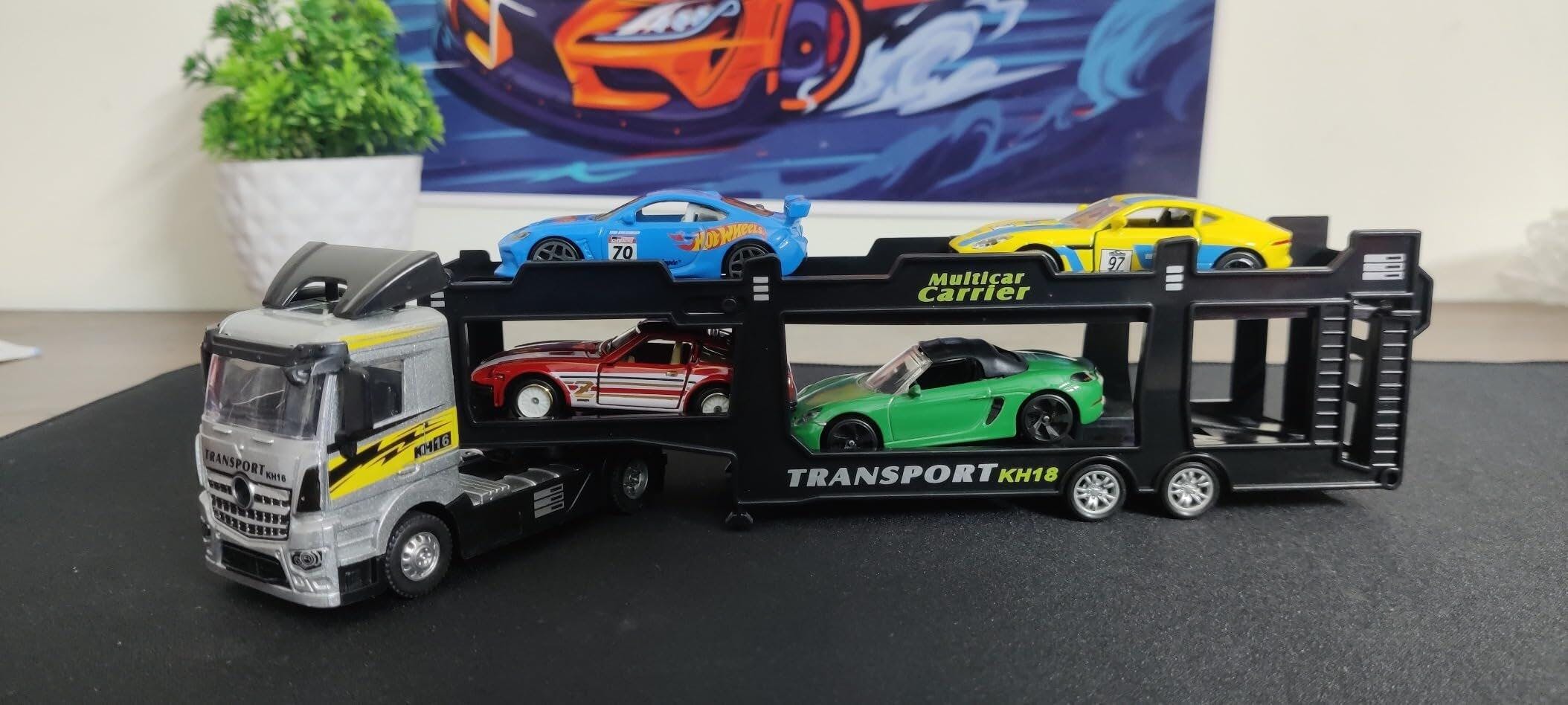 This car transporter truck toy set is perfect for children who love vehicles, trucks, and car collections. With its pull-back action and included cars, it promises hours of action-packed fun!