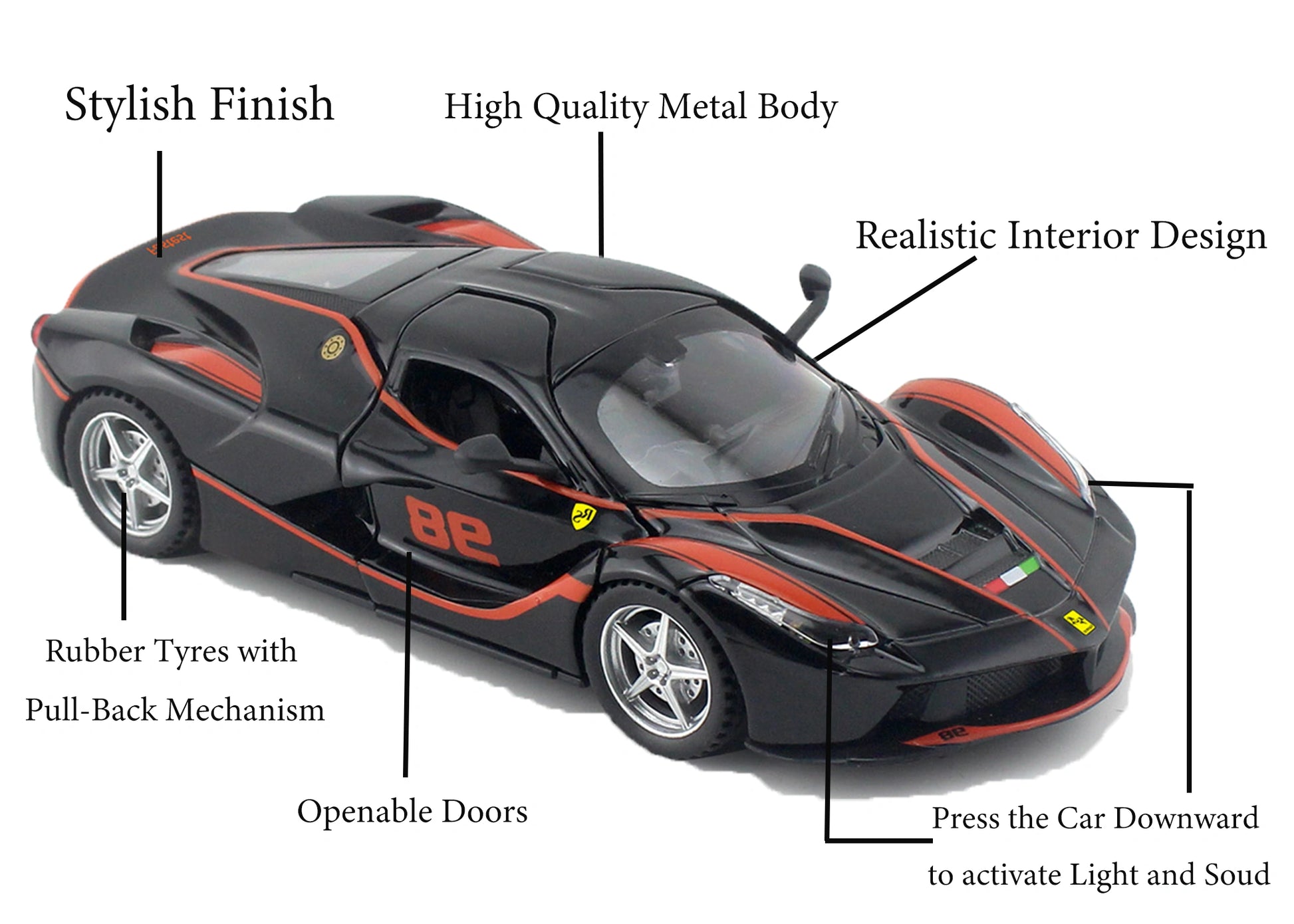Ferari FXXXK 1:32 Scale Diecast Pull Back Toy Car with Openable Doors, Lights & Engine Sound