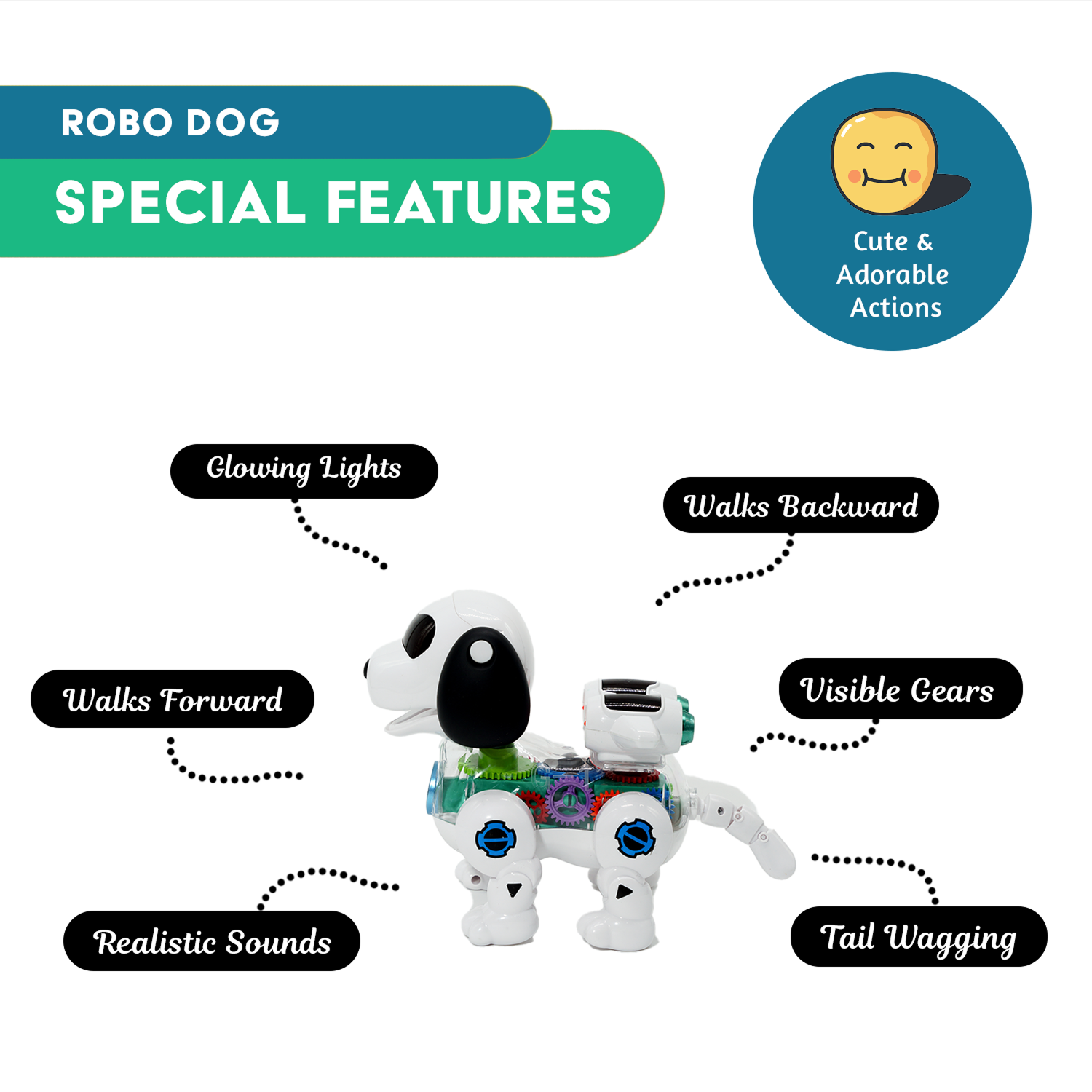 Dynamic Gear Movement: Visible internal gears rotate as the dog moves, teaching children basic mechanical concepts through play.