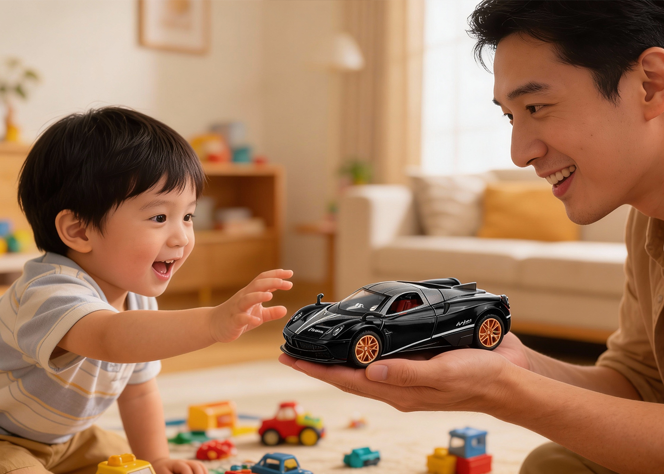 Experience Italian luxury with the Pagani Fengshen 1:32 Scale Alloy Toy Car. This detailed diecast replica features iconic gull-wing doors and a high-quality metal finish. Equipped with interactive lights, music, and a pullback action, this model combines artistic design with durable play, making it a standout addition to any supercar enthusiast's collection.